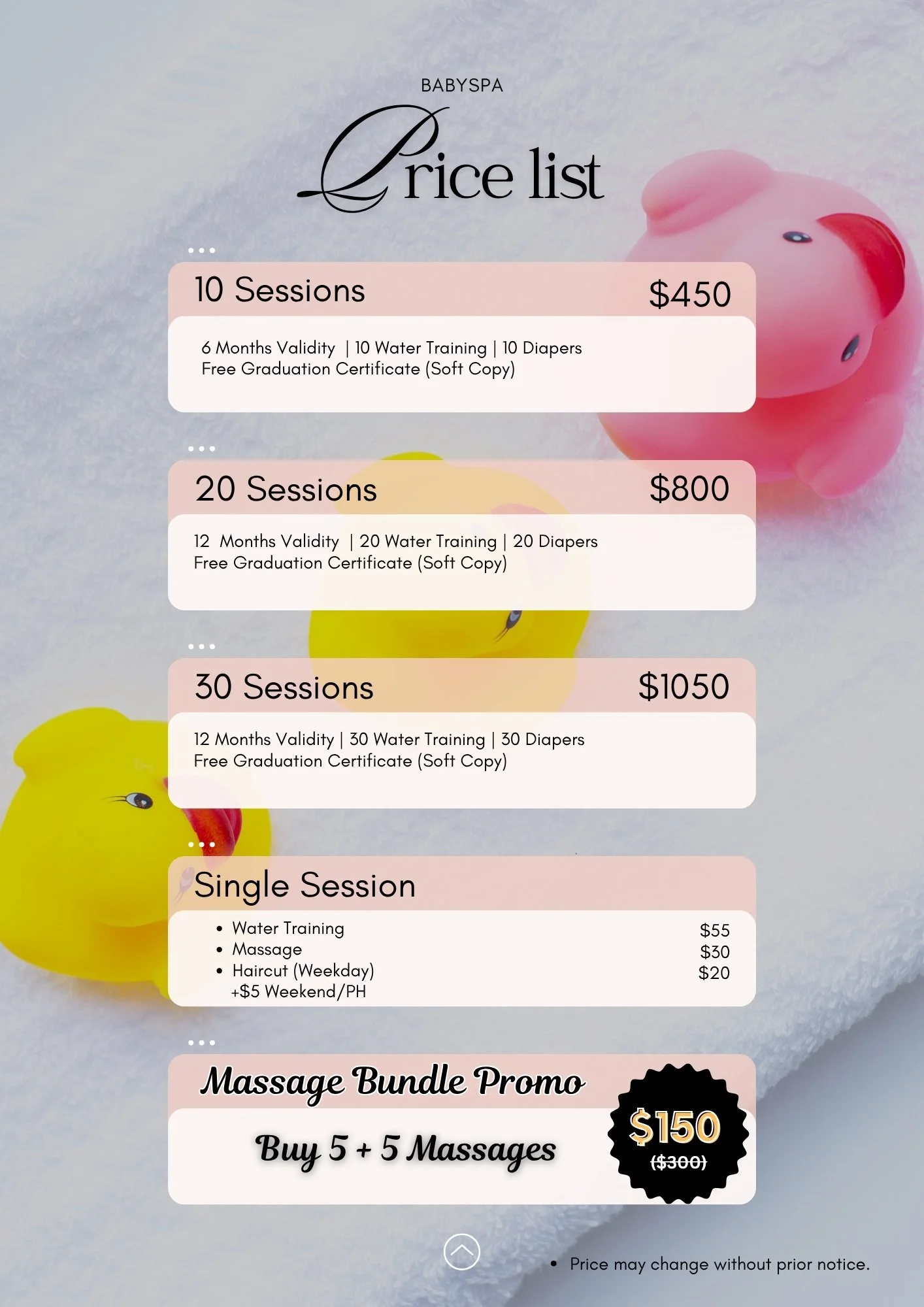 1. BabySPA may capture photos or videos for operational and promotional purposes. By attending the session, customers consent to such use unless otherwise stated before the session.